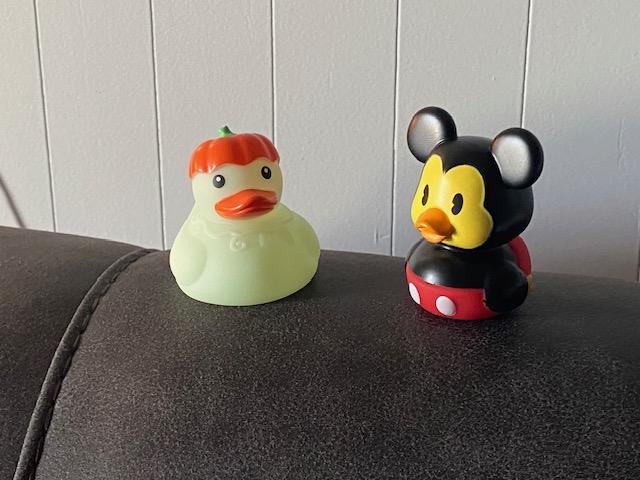 Pumpkin duckie and Mickey Mouse duckie — since Cameron has a Mickey Mouse costume this year!
