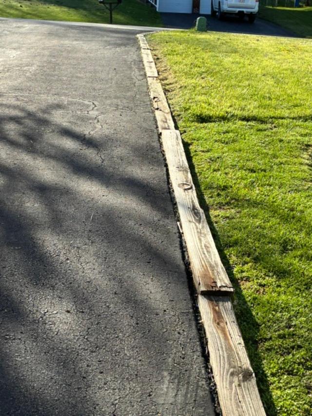 After a banana and half a dozen pizza bites for lunch I went outside. I was torn between pulling weeds or cutting the grass. The grass won out. I weed whacked first, including along the boards lining my driveway. My neighbor Ryan cut their yard but didn’t weed whack – and technically since the logs are mine I feel responsible if they don’t trim. Looks much better!