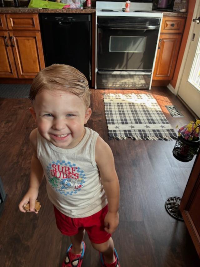 I had to pop home a little early from Church. Autmn txt me early and needed some help with a few things. Noah was working and she had 2 birthday parties to attend and was on a schedule. I was glad I could help a little. I’ll pick up what I missed of Todd’s message later on live stream. Cameron was funny and busy – so I got him to help me. He unwound 3 spools of thread all over the spare bedroom, helped run the sweeper, helped put the sewing machine away, and picked up his farm block set. Also helped me eat the cookies!