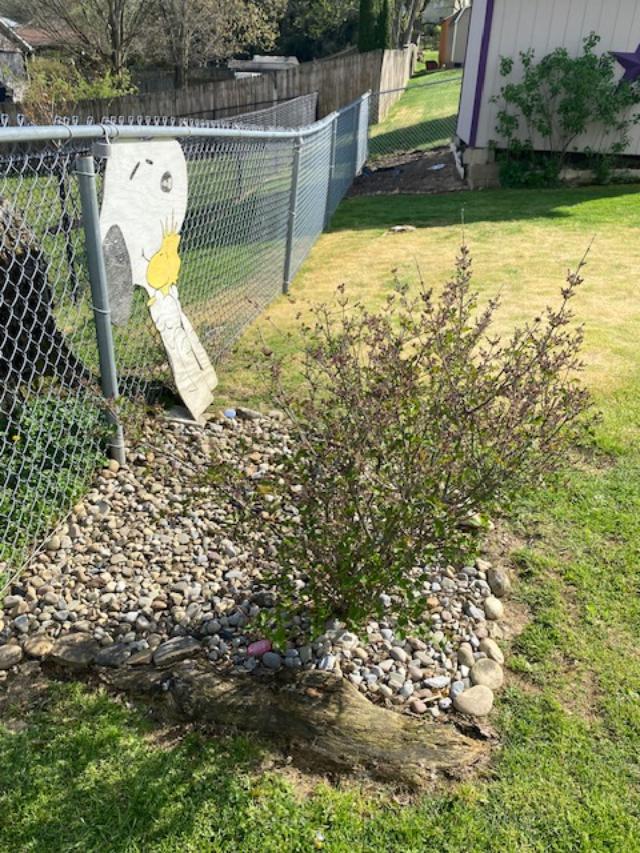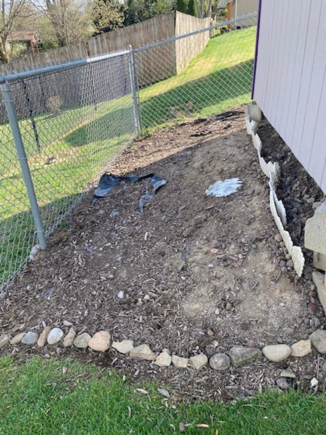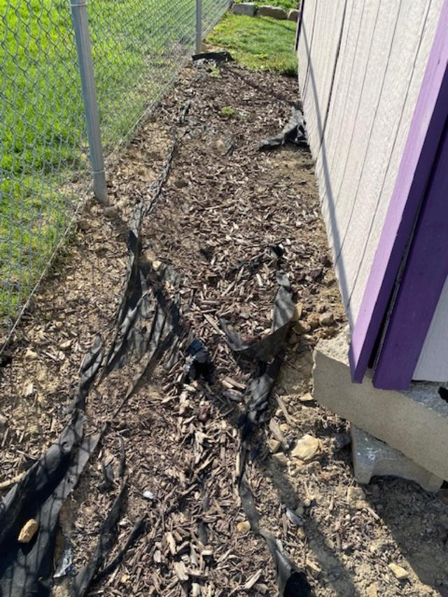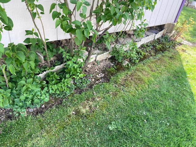 Far side of the shed – all cleaned up but now I need fresh mulch.