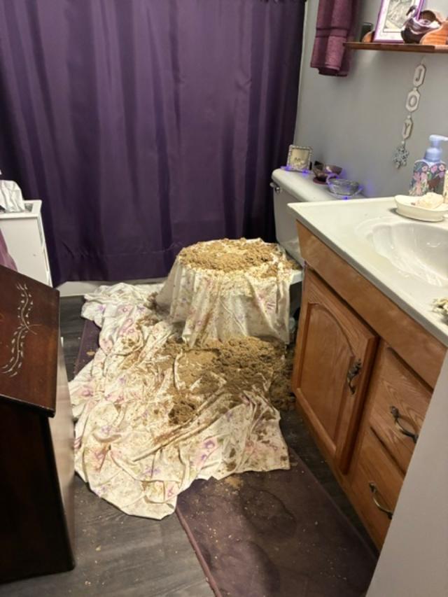 Once he finished that (which only took a few minutes) we went up to check the exhaust fan in the bathroom. He popped over and picked up a new one at Lowe’s. But getting the old one out made a complete mess – there was insulation clumps all over the bathroom! But the new one is installed and working so all is well. It did take a while to get the mess cleaned up.