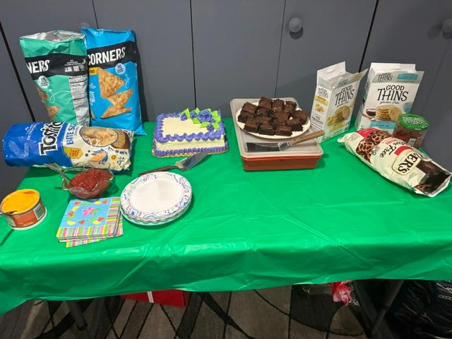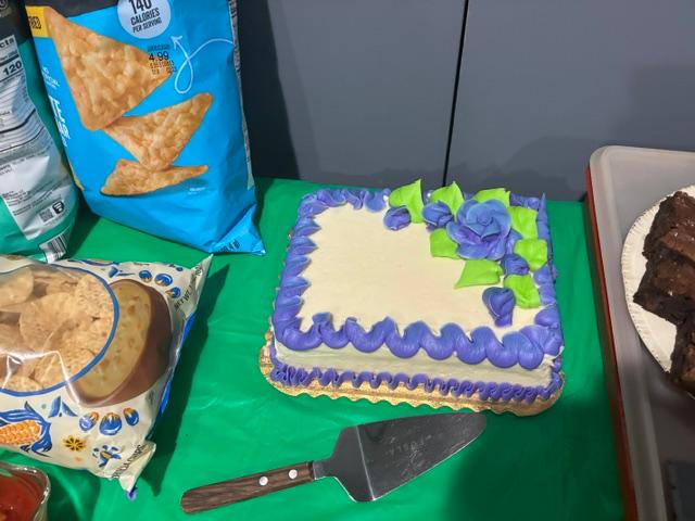 Gail brought a beautiful cake – with purple icing flowers! Karen (coming from Mt. Joy, PA) always brings the chips and snacks. We sure had plenty of that! Holly made her delicious brownies. We snacked all afternoon!