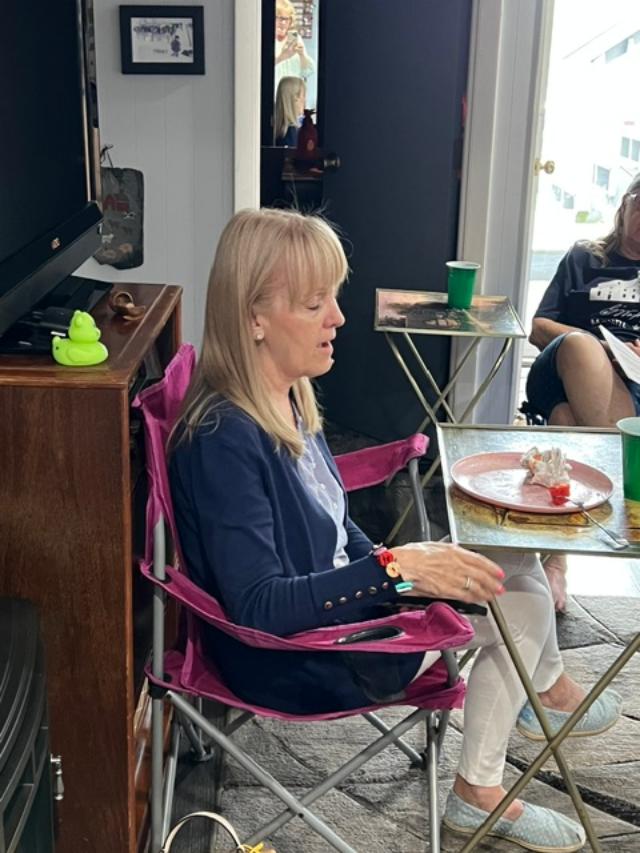 One group had to leave at 3pm, as Colleen’s grandson and his wife were having a gender reveal party – it’s a boy! Congrats to Ethan and Courtney! Beth, Holly and Karen stayed later, and it was a quieter time to just chat and share stories. We always hate to see the end of the day. The girls helped me clean up and we made short work of getting things back to order!