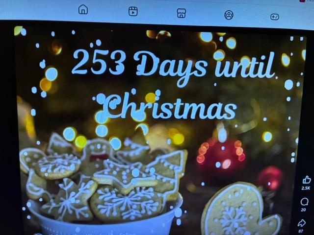 So that’s it for the day. Oh, and I did see the horses again about noon. They are so beautiful standing up in the field in the sunshine! And my friend Tom sent me a Christmas video – with a note: 253 days until Christmas! (Just a note – there are only 247 days — I think this was someone’s miscalculation!)