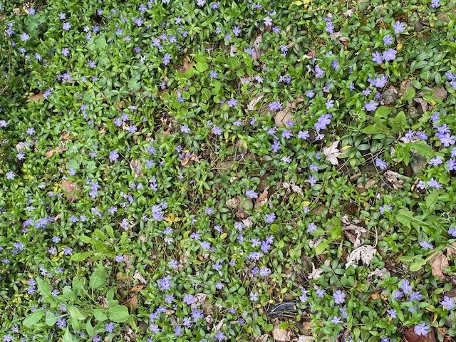 When I went out for the mail I snapped pictures of the mock orange and the myrtle bed by the walk.