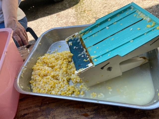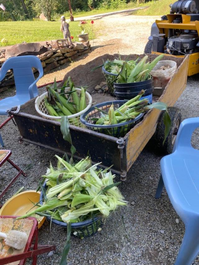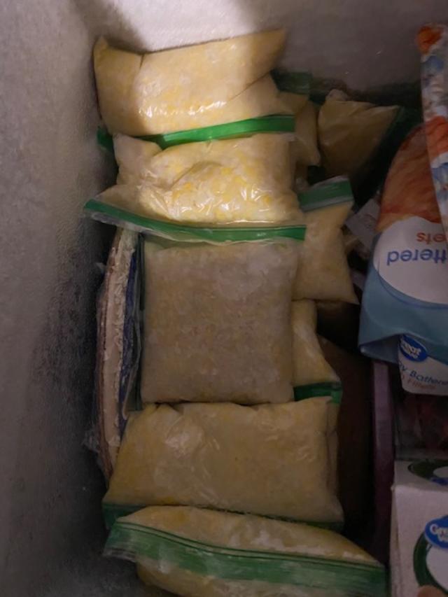 Bags of corn tucked in my freezer.