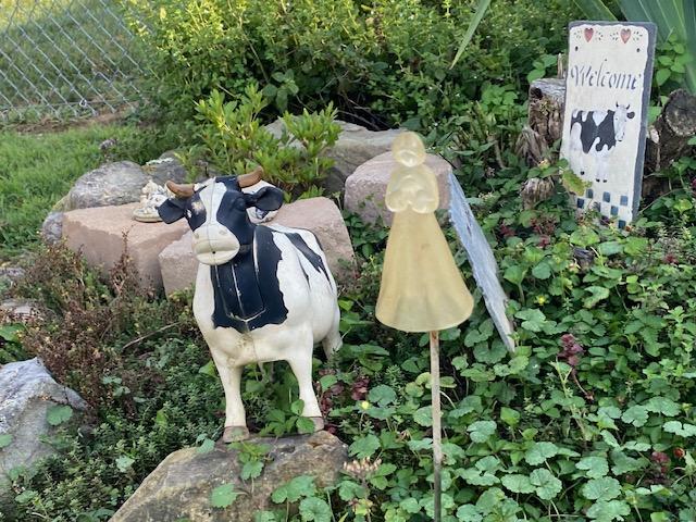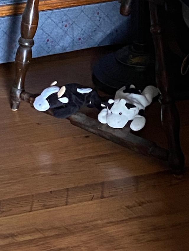 I headed to Miller’s Crossing in Irwin to get my jar of honey. While I was there I (of course!) walked around and looked at everything. I keep my eyes open for Beanie Baby skunks – but today I found a cow! I had a white one but now I have twins! Well, this one in black with a white spot. But it’s really cute.