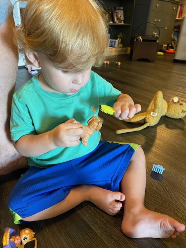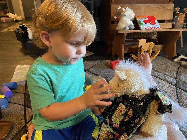 Autmn txt me to say she and Cameron were going to hang out with me for a while this afternoon. He was fun and happy but can get his shares of NO!!! into his interactions! We spent time building with foam blocks, cooking and feeding the animals, and reading his favorite books.