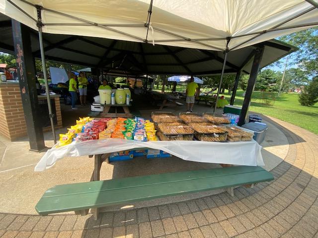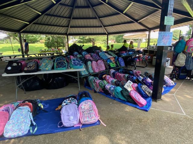 Our church was having their backpack outreach after church – and had the big pavilion set up with games and prizes and snacks and tons of backpacks filled with school supplies. When Mary and I left the lines were already crowding in. Great event! Below are photos of the backpack event set-up.