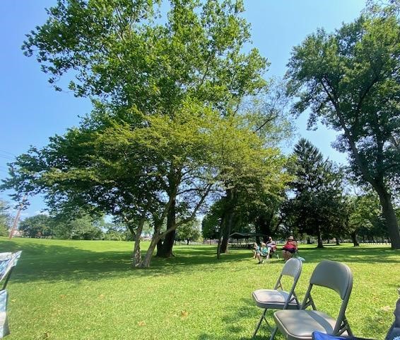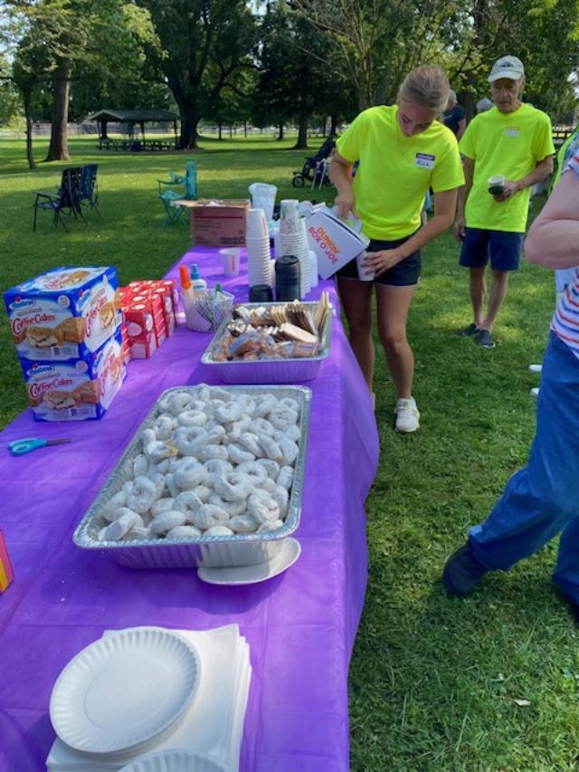 HCC was having church at Legion Keener Park this morning, starting a little later than usual. So I took my time getting up, read a chapter in my current book – which is surprisingly good! – and did the ironing. Mary picked me up, which is also unusual. I’m usually the one driving. It was a pleasure to be a passenger! It was also a pleasure to find that there was a ‘breakfast’ table with sweets and coffee before church.
