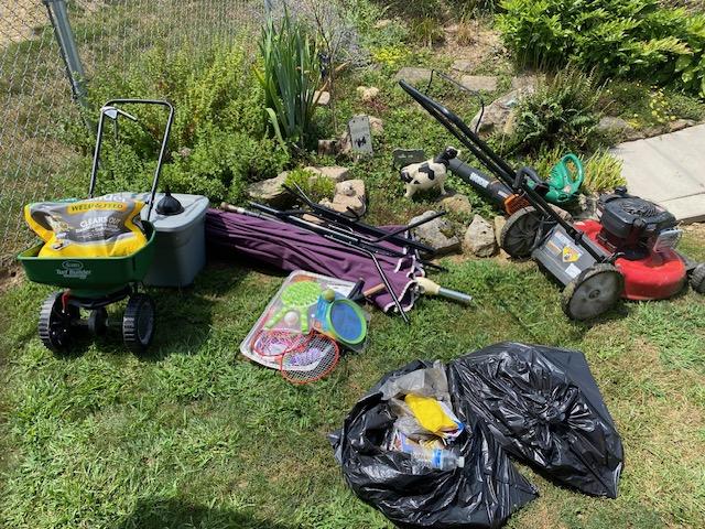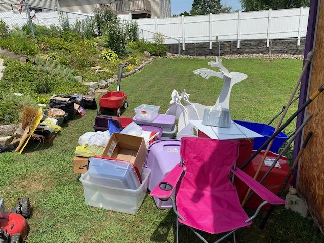 These are the piles of stuff that I took out. Some of it I took to Goodwill, some I’m saving for the Skunk Hollow auction/sale, and some is just trash.