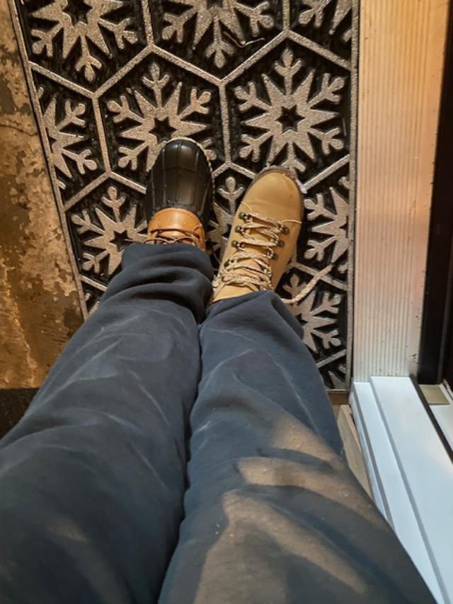 Kelly and I had a productive week! Everything is done – the house is decorated, inside and out. The boxes are restacked on the shelves so the car is tucked back in the garage. We finished all the decorating yesterday – had a good rest and this morning both of us had a little business (work) to handle. After lunch we made her famous Chocolate Chip Cookies – and they are tucked in the freezer. Yesterday we shoveled the driveway, and I grabbed my shoes and didn’t realize I had on two different shoes!