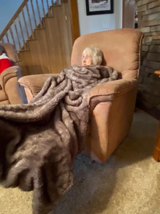 Aunt Joan bundled up warm!