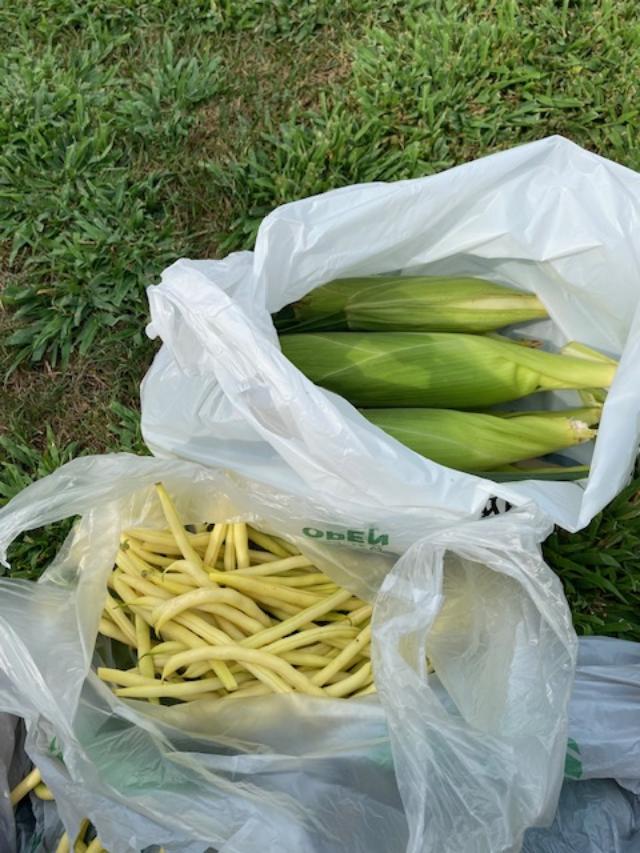 Chase and I went back out to the Mall for lunch and looked again for his Pokemon Umbrion that he wanted. No luck. We came home and looked on line, too. But we left the Mall and went to Palmer’s Farm Stand. I was looking for tomatoes but they didn’t have any. I got 6 ears of corn and a pound of yellow (green) beans. I snapped and cooked the beans and will probably have an ear or two of corn for supper.