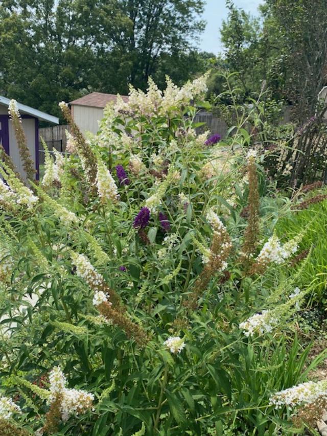 Butterfly bush and Pinky-Winky bush blooming together.