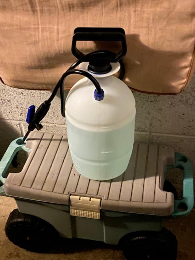 After church I had a piece of toast with a slice of tomato for lunch, then did a few quick things outside. I finished cleaning off the driveway, and since the batteries were charged I could use the blower. I mixed up the home-made weed killer and put the new sprayer together. I test-sprayed the wood lining the driveway but it was too hot to spray everywhere. I think it would have evaporated before it soaked into the roots. Waiting for a cooler day.