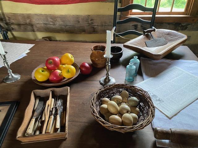 Thankfully we did not get the nasty weather today that was expected. I spent the day until 2:30pm interpreting the upstairs rooms of the tavern. We had some very interested people and they seemed excited about the information. An old friend from Smail’s, Kathy Barnard, stopped by and it was so great to see her and catch up! So that was a nice day. Pictures from the day: