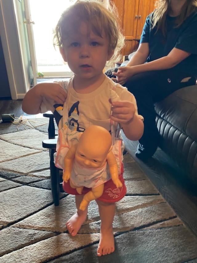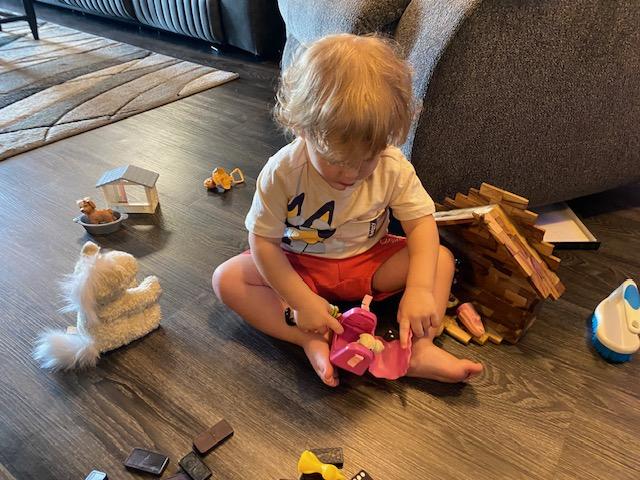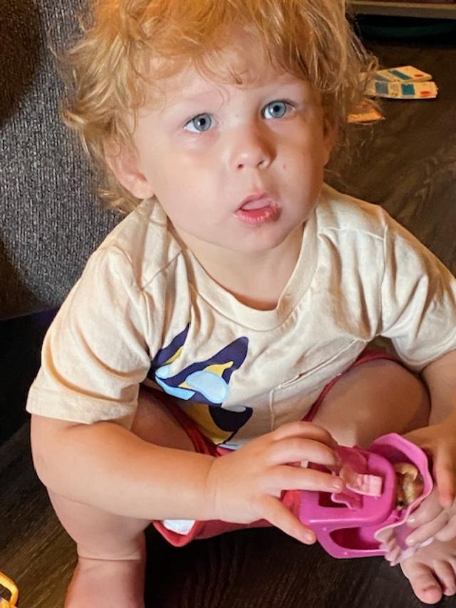We had a good day – Cameron was very good. Josie (Jojo) – Autmn’s youngest sister – came down to help, and she really was a big help. He played hard and took a short nap and ate a nice lunch. We laughed at him a lot.