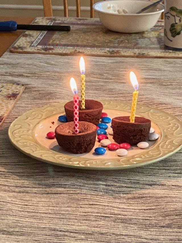 SO – back to vacation. Wednesday morning I came downstairs and Gen had put three mini-brownies with candles on the breakfast table, with M&M’s! So it was a festive start to my birthday day.