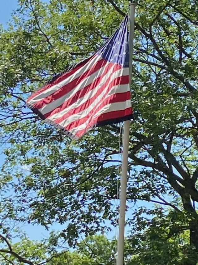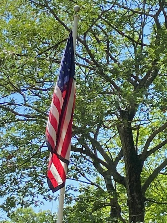 Notice the black mourning band around the flag.