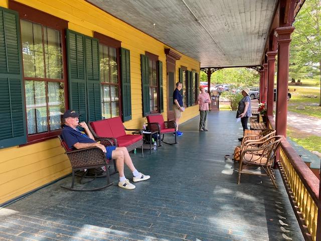 Gen and Kath chatting with Mark on the porch.