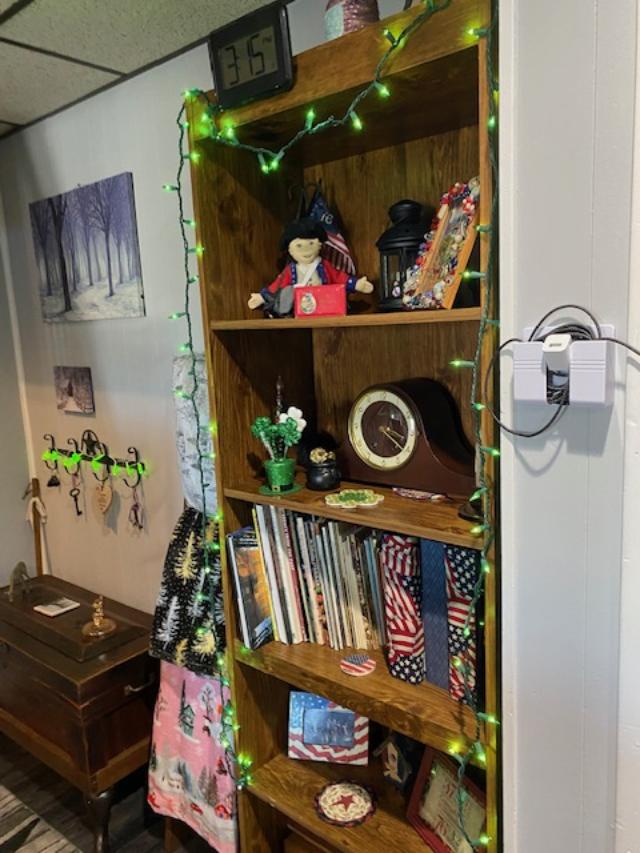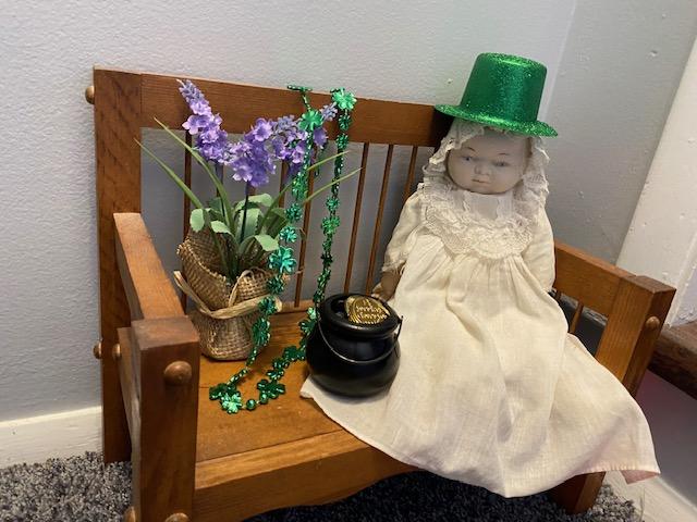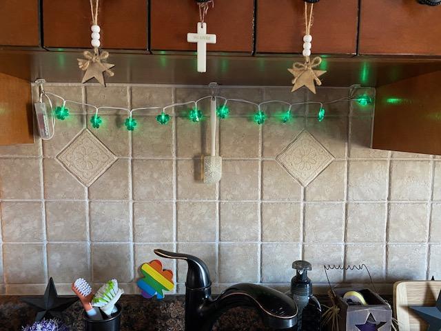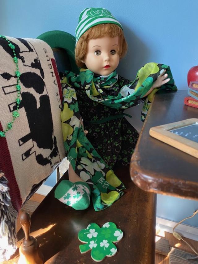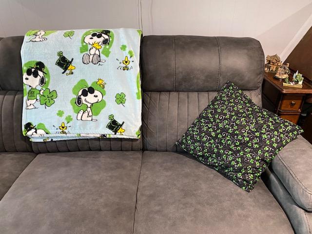 When I got home I made a salad for lunch, then started on the St. Patrick’s Day decorations. I put up a few (but not all) of my lights, the coasters, blankets, and little stuff.