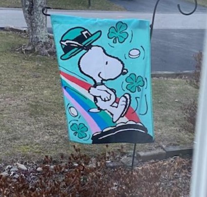 The weather really took a dive. It was sunny, still, but breezy and chilly. I did go outside long enough to put up the St. Patrick’s day garden flags but didn’t stay out. Right now the sky is pink, which bodes well for tomorrow!