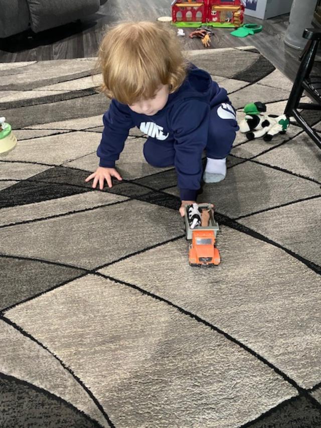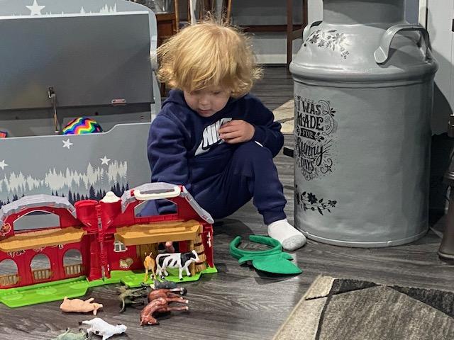Work was very busy – and I didn’t get home until 11am. Autmn and Cameron were here waiting when I got here. I told Autmn I would watch Cameron while she went Door Dashing for a little while. He was pretty good – but he’s SO FAST and SO BUSY! A few times he was up the steps before I could catch up to him. We read books and played with blocks and the farm and his cows and a card game and hide & seek in the closet!