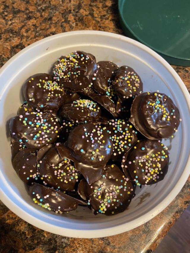 Once I got home from work today I did a few chocolate covered mini cookies. On these I used spring sprinkles rather than winter. I’m sure they will taste very different!