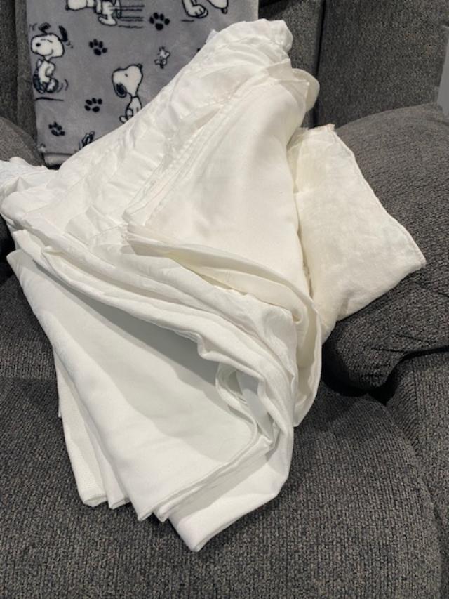 I finally went through the tea linens that Kathleen (from Hanna’s Town) took home. They were very stained and I couldn’t get them clean enough. She did an amazing job! Not a stain on any of them. So I’ll press them off and have them ready for the tea on May 9th.