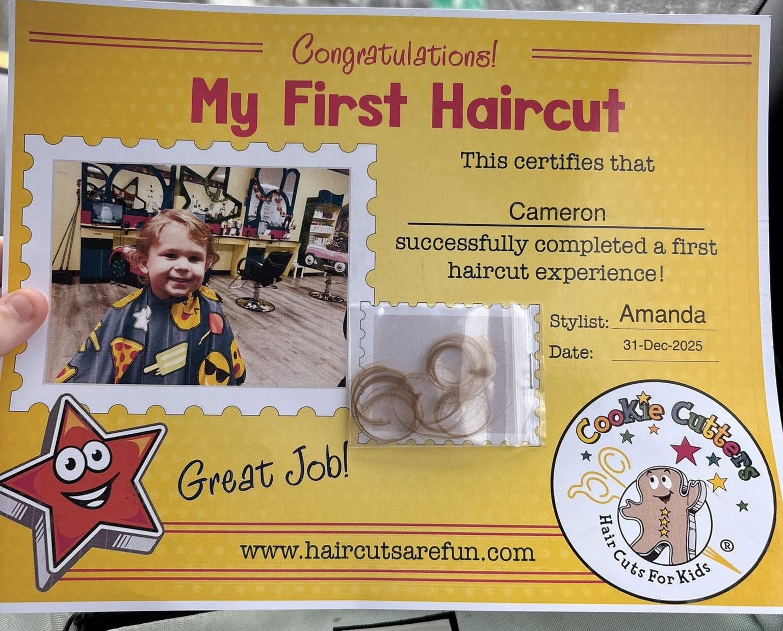Autmn sent me pictures of Cameron’s first haircut! He looks like a little man! How handsome he his! Love this little guy!