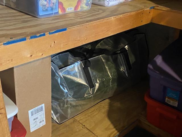 After the lights, I took down the tree. Then I took the tree apart and put it in the new storage bag I finally bought. It was very inexpensive but it works perfectly. In fact, the main tree fits in, and so does the little 4 foot tree I bought a few years ago. Perfect!