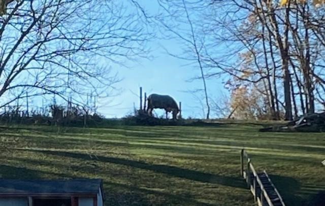 One of the horses was out in the pasture nibbling this afternoon. It was sunny but cool. I was hoping to rake some leaves but it was a bit windy for that. Maybe Saturday!