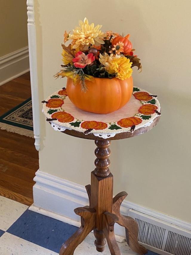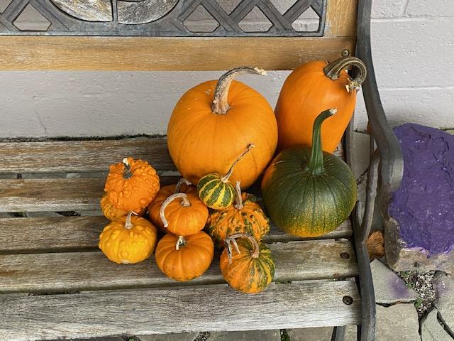 Pumpkins on the porch – left over from the tea.